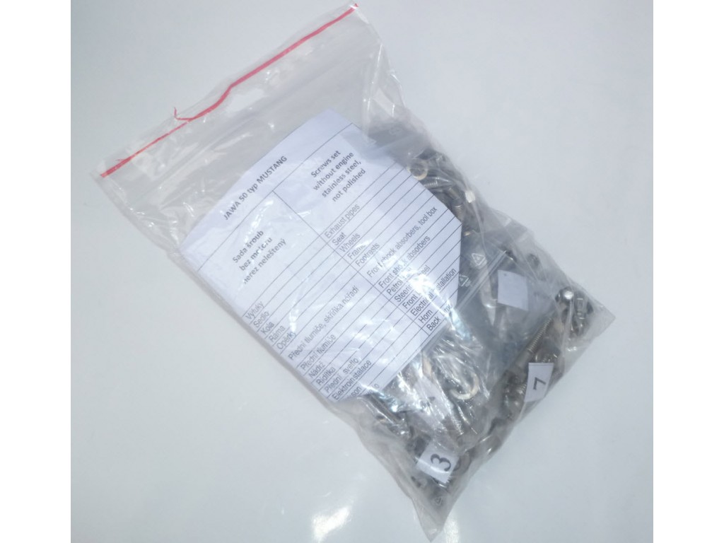 Spojovací materiál komplet, bez motoru.