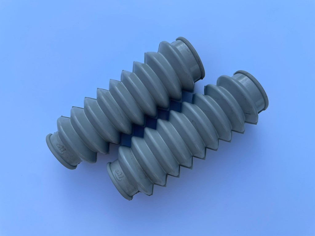 MANŽETY PŘEDNÍCH TLUMIČŮ - ŠEDÉ (PÁR) - KRÁTKÉ - (DÉLKA 12,5cm)